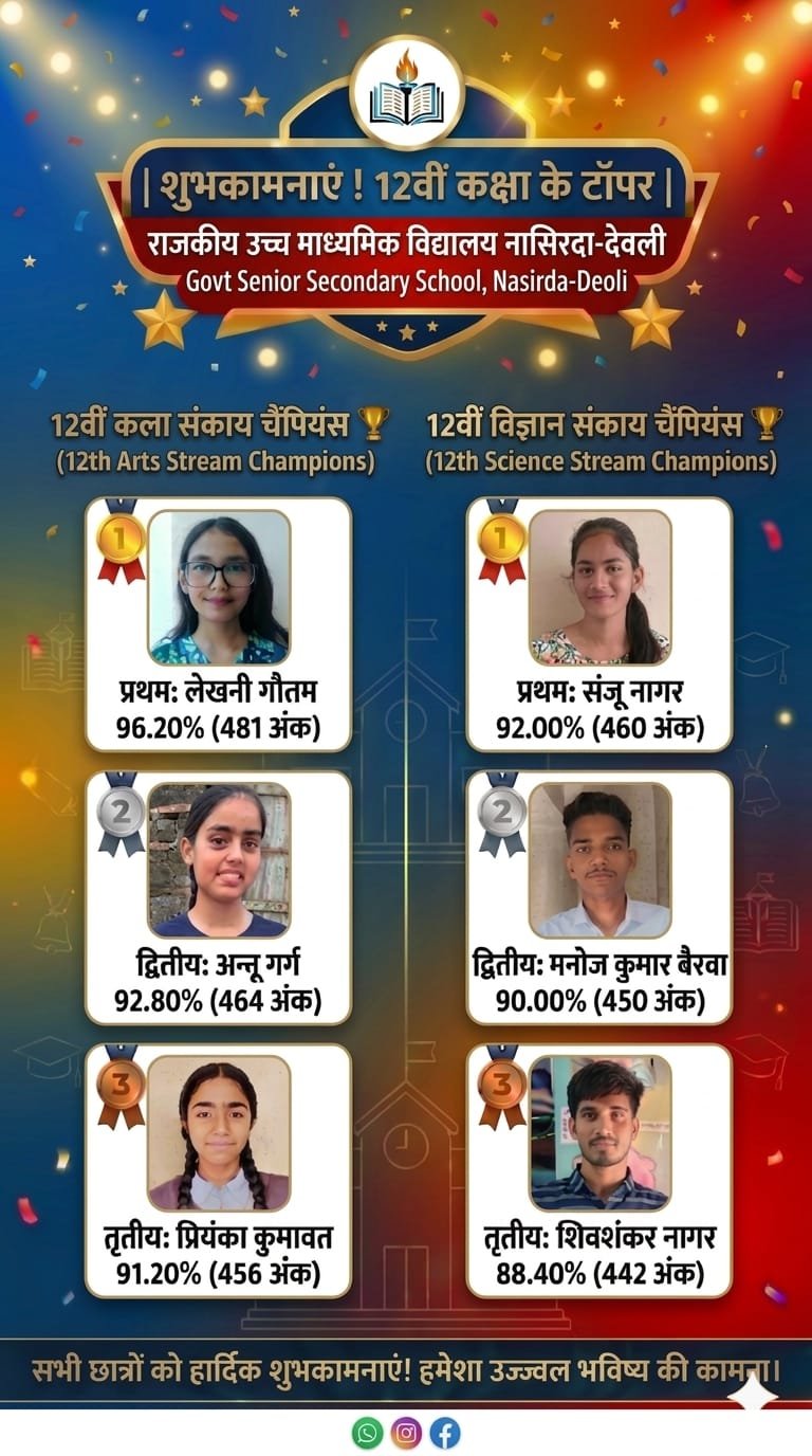नासिरदा: स्थानीय राजकीय उच्च माध्यमिक विद्यालय में बोर्ड परीक्षा में सर्वोत्तम अंक प्राप्त करने वाले मेधावी विद्यार्थियों के सम्मान में एक भव्य कार्यक्रम का आयोजन किया गया। इस ऐतिहासिक अवसर पर टॉपर्स को साफा और माला पहनाकर सम्मानित किया गया, जिसके पश्चात् डीजे की धुन पर पूरे गांव में एक विशाल रैली निकाली गई।