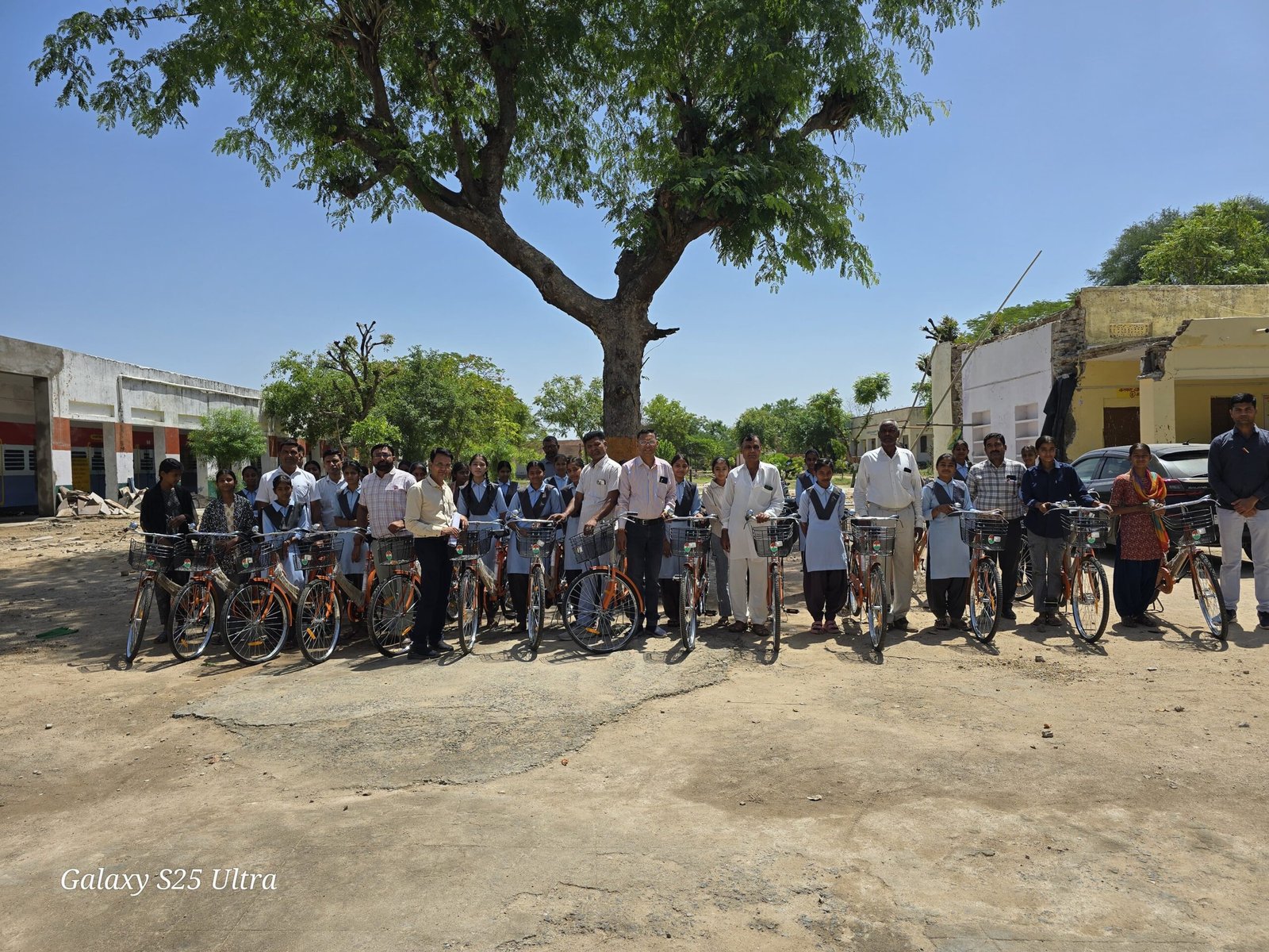 देवली/नासिरदा:-(बृजेश भारद्वाज)। स्थानीय राजकीय उच्च माध्यमिक विद्यालय में निशुल्क साइकिल वितरण समारोह का शानदार आयोजन किया गया। समारोह के दौरान विद्यालय में 28 निशुल्क साइकिलों का वितरण किया गया। नई साइकिलें पाकर विद्यार्थियों के चेहरे खुशी से खिल उठे। कार्यक्रम में प्रांतीय संयोजक सुरेंद्र नामा ने मुख्य अतिथि के रूप में शिरकत की। कार्यक्रम में SMC (विद्यालय प्रबंध समिति) के अध्यक्ष मोहन माली और SDMC सदस्य कृष्णगोपाल पारोता ने भी विशिष्ट अतिथि के रूप में मंच साझा किया। इनके साथ ही गणमान्य अतिथियों में मनोज खांडल, राजकुमार महेश्वरी और राधा शर्मा विशेष रूप से उपस्थित रहीं। मुख्य अतिथि एवं अन्य अतिथियों ने अपने कर-कमलों से विद्यार्थियों को साइकिलें सौंपी और शिक्षा के क्षेत्र में आगे बढ़ने के लिए उनका उत्साहवर्धन किया। अतिथियों ने कहा कि इन साइकिलों से दूर-दराज से आने वाले विद्यार्थियों को समय पर स्कूल पहुंचने में काफी सहूलियत मिलेगी। विद्यालय के प्रधानाचार्य भगवान शर्मा ने पधारे हुए सभी अतिथियों का स्वागत एवं आभार व्यक्त किया। उन्होंने विद्यार्थियों को नियमित रूप से विद्यालय आने तथा मन लगाकर पढ़ाई करने के लिए प्रेरित किया। इस गरिमामयी समारोह के दौरान विद्यालय का समस्त स्टाफ उपस्थित रहा और कार्यक्रम को सफल बनाने में अपना सक्रिय योगदान दिया।